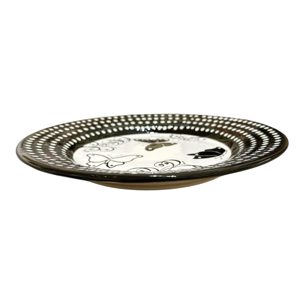Piatto piano lavorato e dipinto a mano.