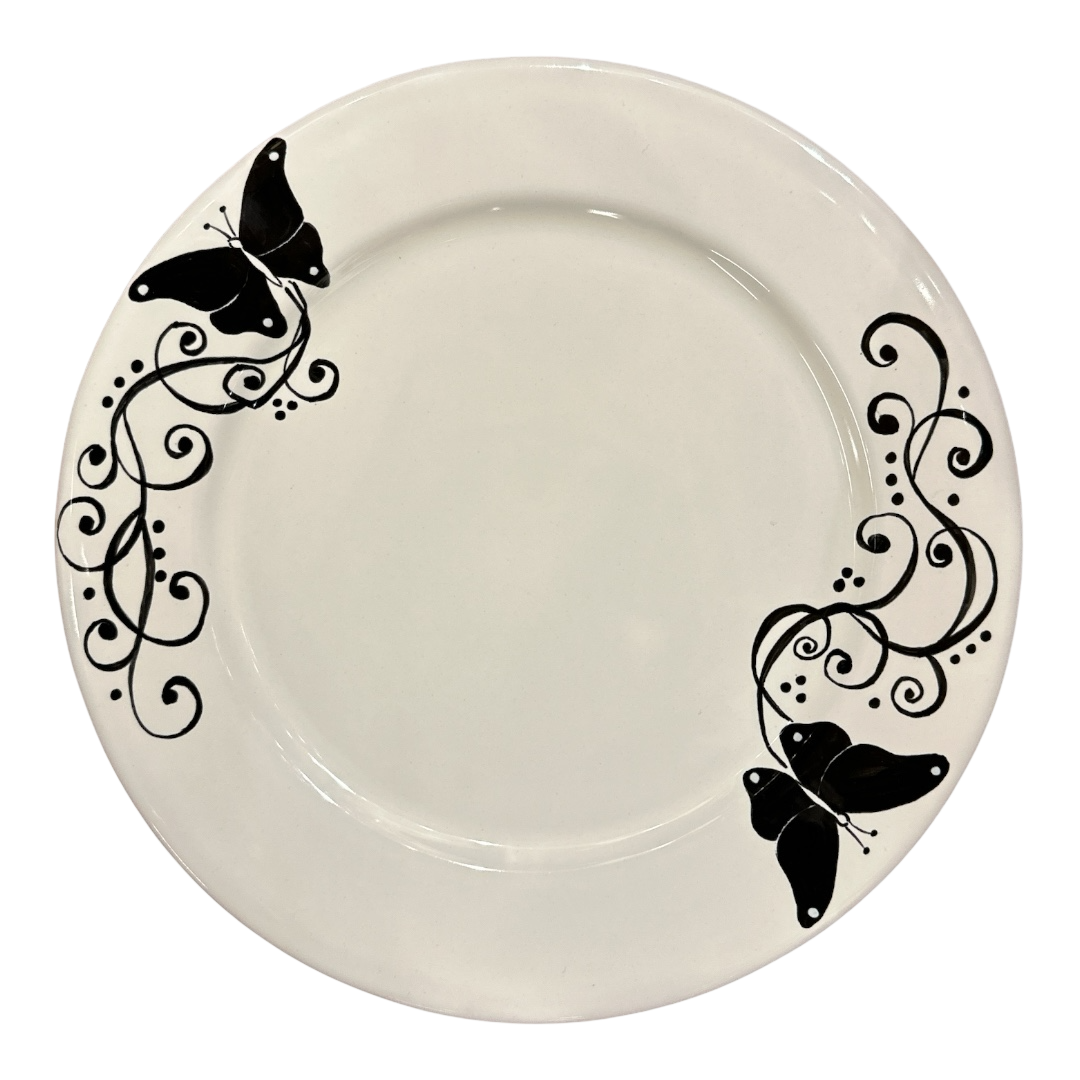 Sottopiatto lavorato e dipinto a mano. Diametro 31 cm. Collezione L&L Black and White. Mod.02.