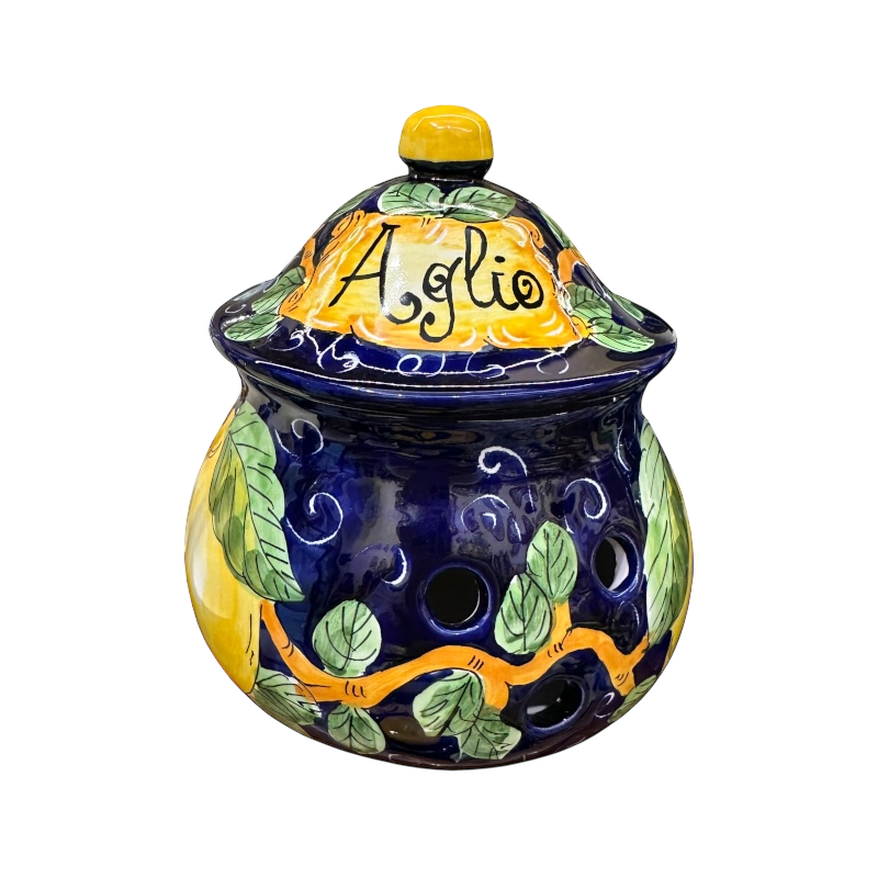 Barattolo Porta Aglio H.13 cm – Limone Fondo Blu