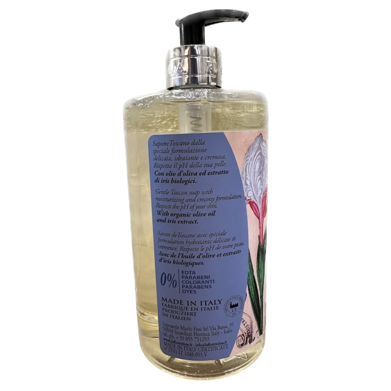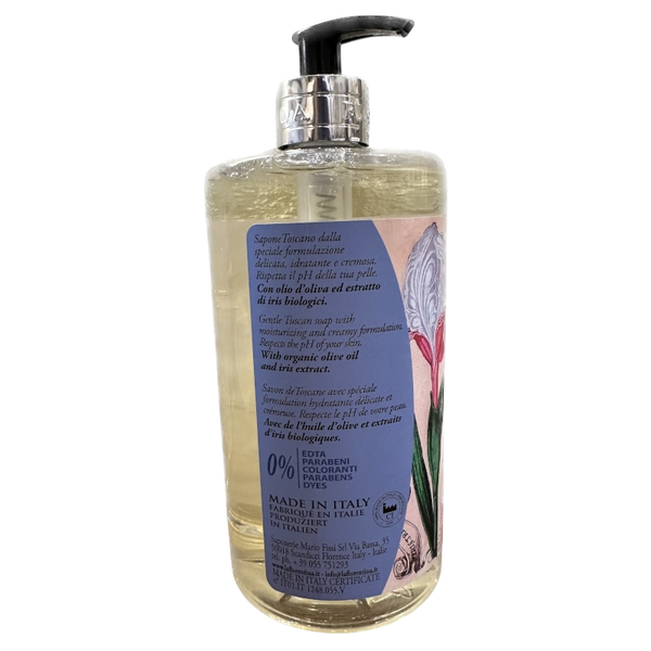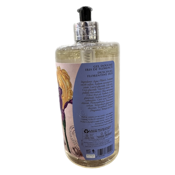 Gel doccia in flacone da 750 ml con dosatore. Fragranza Iris Florentina. Made in Italy.