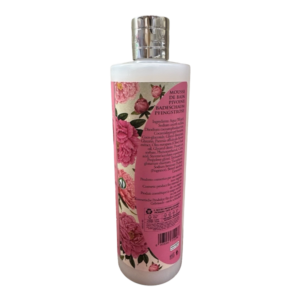 Bagnoschiuma in flacone da 500 ml. Fragranza Peonia Arborea. Made in Italy.