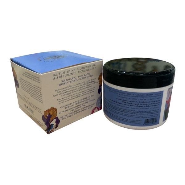 Burro corpo arricchito con estratto di iris e burro di karité, dona nutrimento e lucentezza alla pelle.